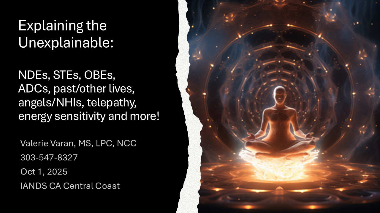 In Valerie’s presentation to the International Association for Near-Death Studies (IANDS) California Central Coast group, she shares how common are many types of spiritual experiences. She then goes on to explain why classical physics, materialist models, focusing on spacetime rules and electromagnetism cannot be valid; why quantum/informational models highlighting nonlocal consciousness are needed; why this matters to the field of psychology/psychotherapy and especially to each of us!